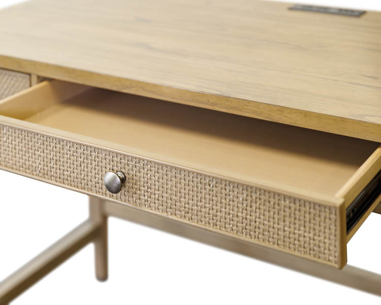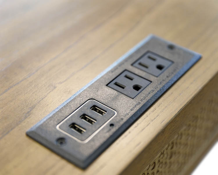 Includes Pencil drawer with ball bearing glides, two utility drawers for additional storage. Power Center with AC power outlets and USB 2.0 ports for convenient charging.