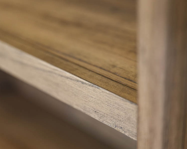 The warm mid-tone brown finish with golden highlights brings out the natural beauty of the wood veneers.