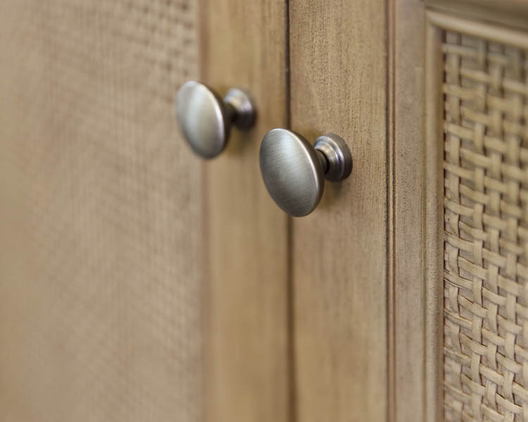 Delicate pewter knobs are the perfect accent to this simple yet stylish collection.