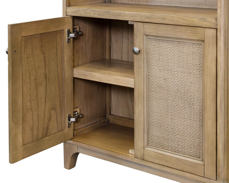 Includes three adjustable shelves, one fixed shelf, two doors concealing storage space.