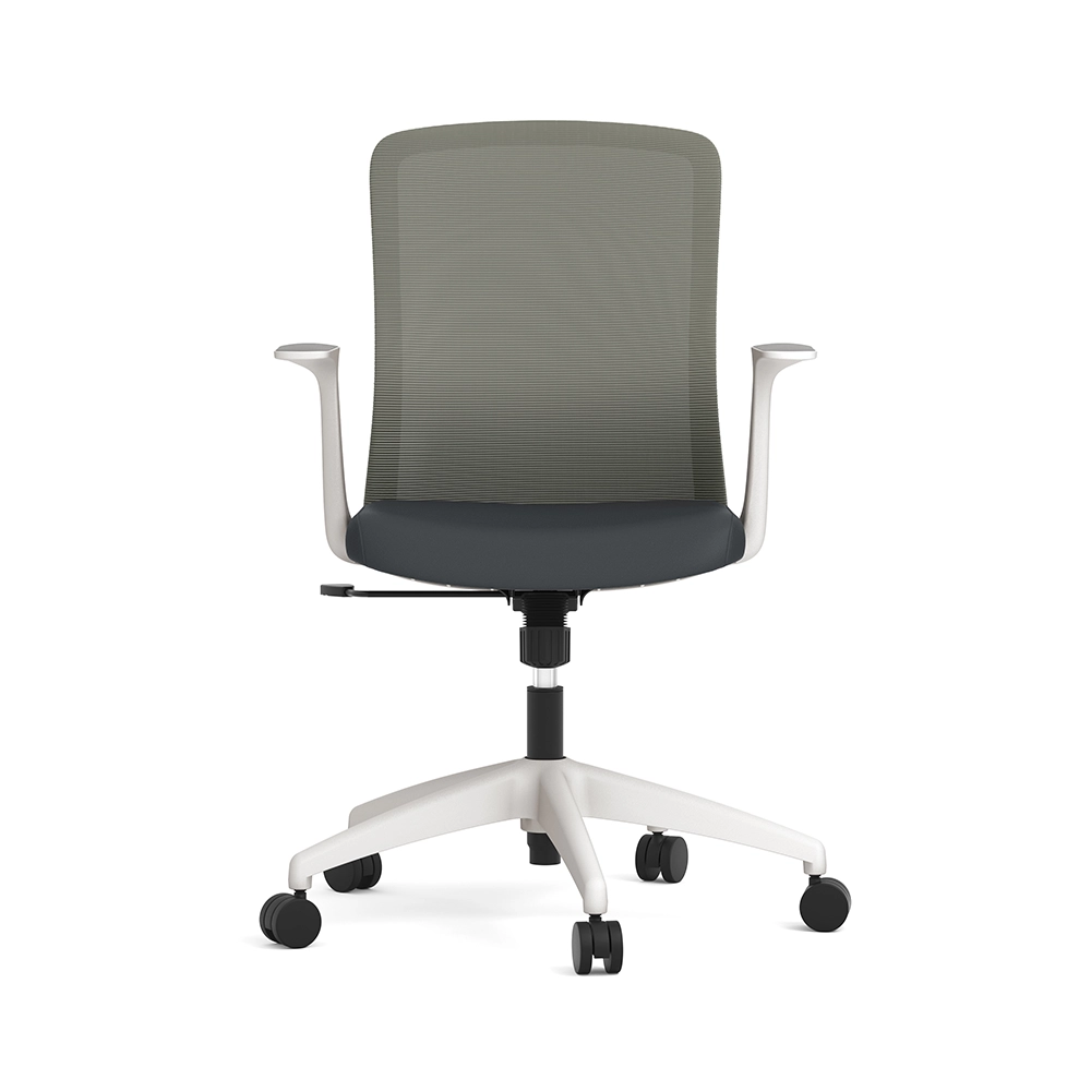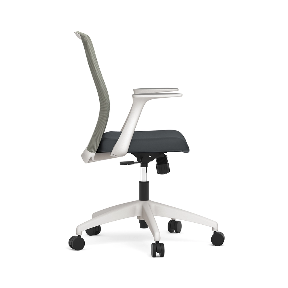 Modern looking white frame and breathable mesh back ands contemporary styling to any work environement.