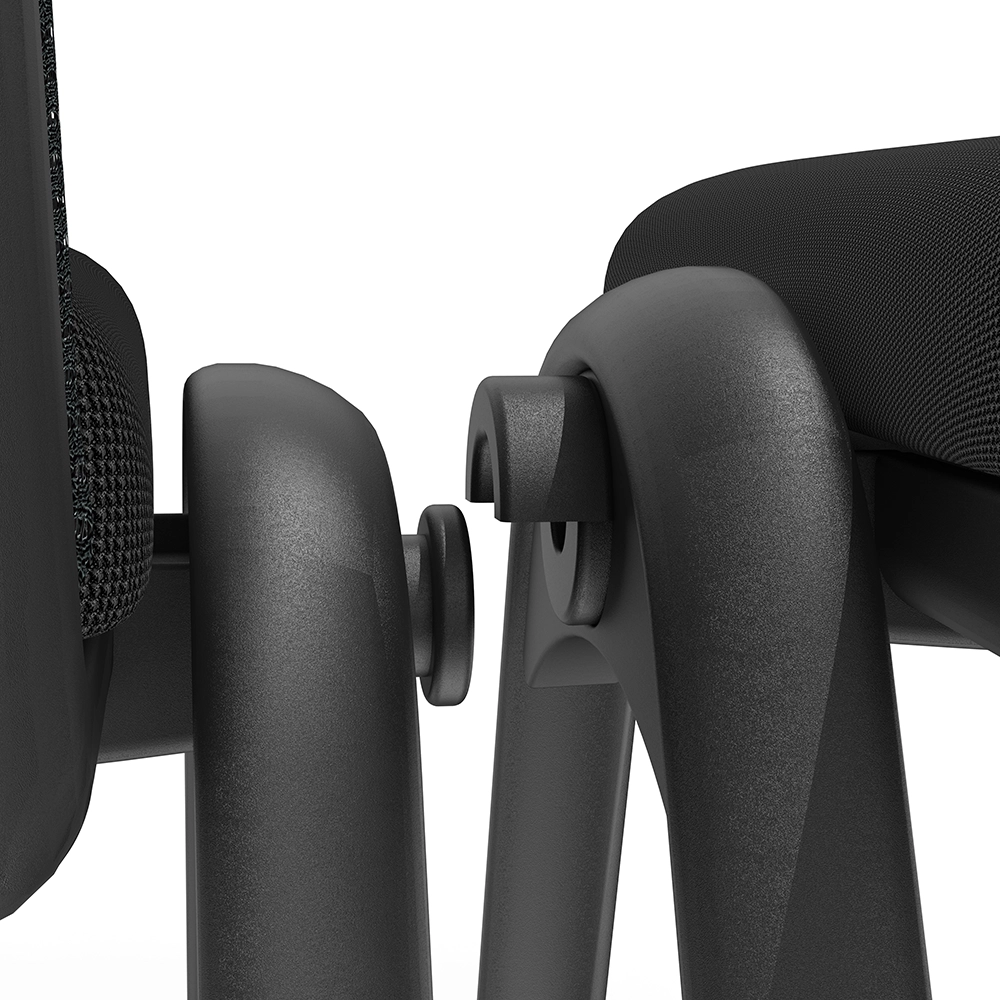 Easily gang chairs into rows with the allows available ganging pins on each chair.