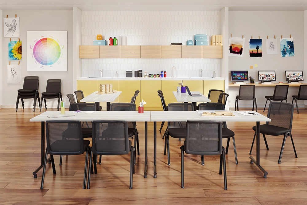 Node armless stack chair is perfect for classrooms, meeting and multi-functional spaces.